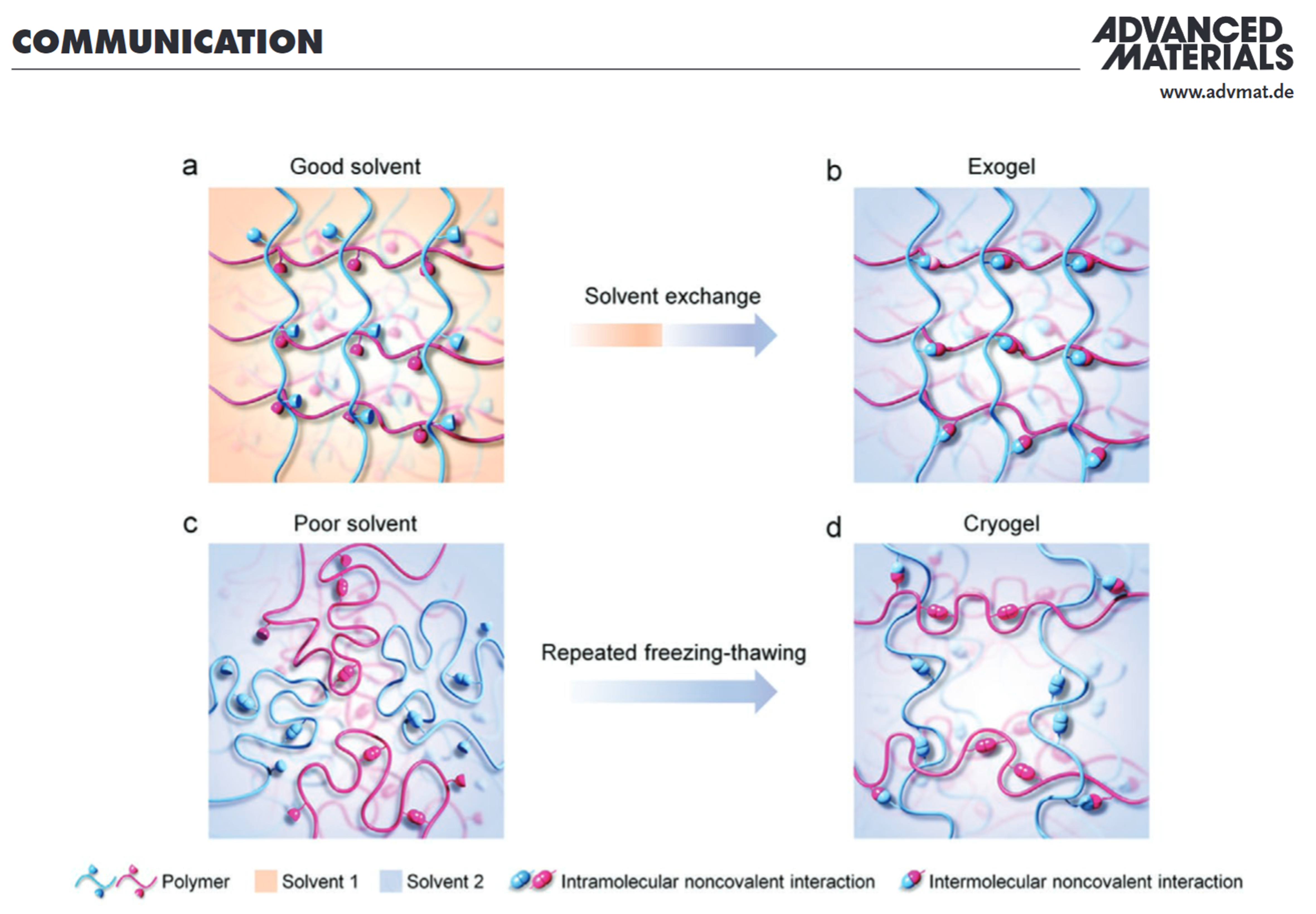 (2) L. Xu, S. Gao, Q. Guo, C. Wang, Y. Qiao*, D. Qiu*, A solvent-exchange strategy to regulate noncovalent interactions for strong and antiswelling hydrogels, Adv. Mater., 2020, 32, 2004579. [Back Cover] [Highlighted by Materials Views China]